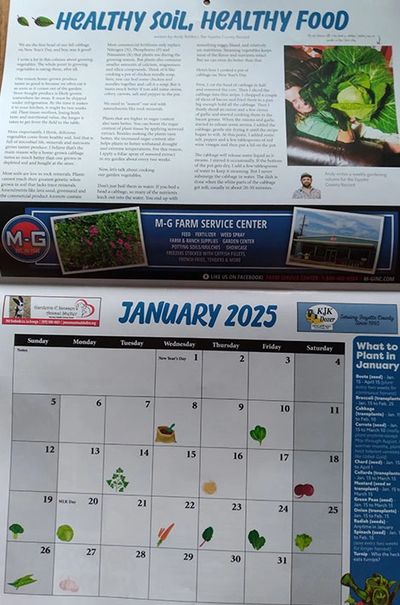 Around the first of the new year, watch for this publication in your subscription of the Fayette County Record. This printed publication does just about everything but plant the seeds and pull the weeds. Andy has done all the planning work to identify the best planting dates for gardeners in Fayette and surrounding counties. Be sure to have this printed calendar on your desk to make notes, and track your progress. The calendar also contains relevant gardening articles and advertisements from area merchants and gardening interests.